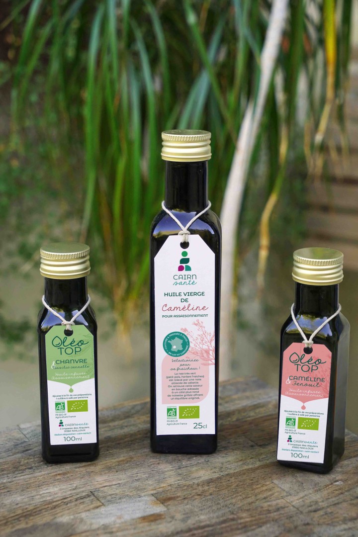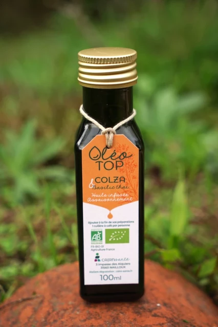 Alors, fin 2022, je me lance dans la découverte et la description des arômes d'une douzaine d'huiles végétales avec des aromaticiennes. Puis je décide de me concentrer sur celles riches en oméga-3 (chanvre, caméline, colza et noix), car l’urgence est là. Et je crée des huiles infusées pour allier saveurs et santé et permettre à tout un chacun d’apprivoiser les huiles vierges. Profondément connectée à la nature, mes oléotop devaient être issus de matières brutes que nous offre la nature sans arômes, sans huiles essentielles et certifiées BIO.